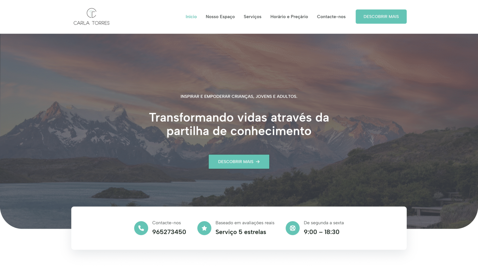 Um website que traduz fielmente a essência da marca pessoal da Carla Torres e contribui para a sua presença online e credibilidade profissional.